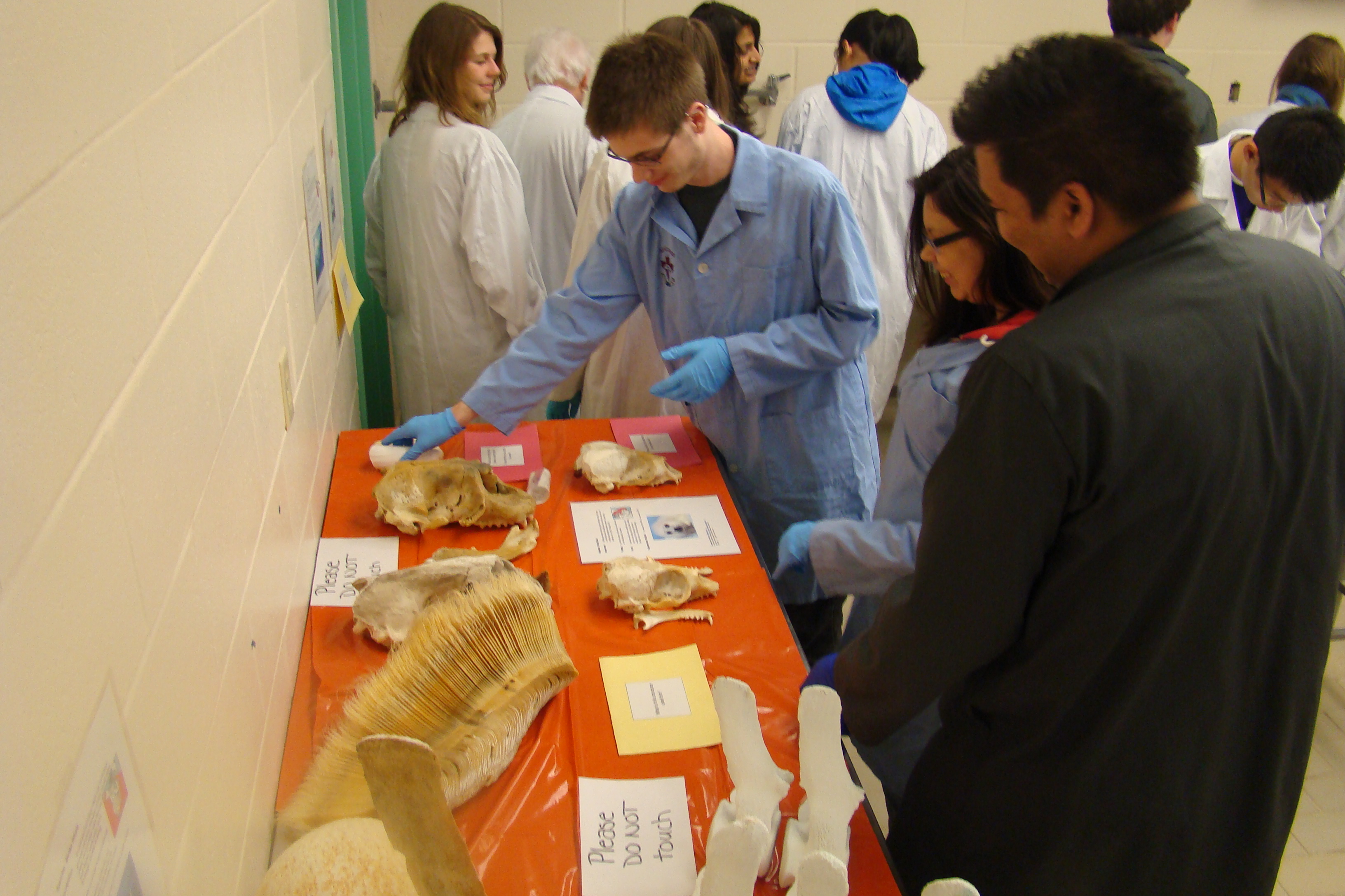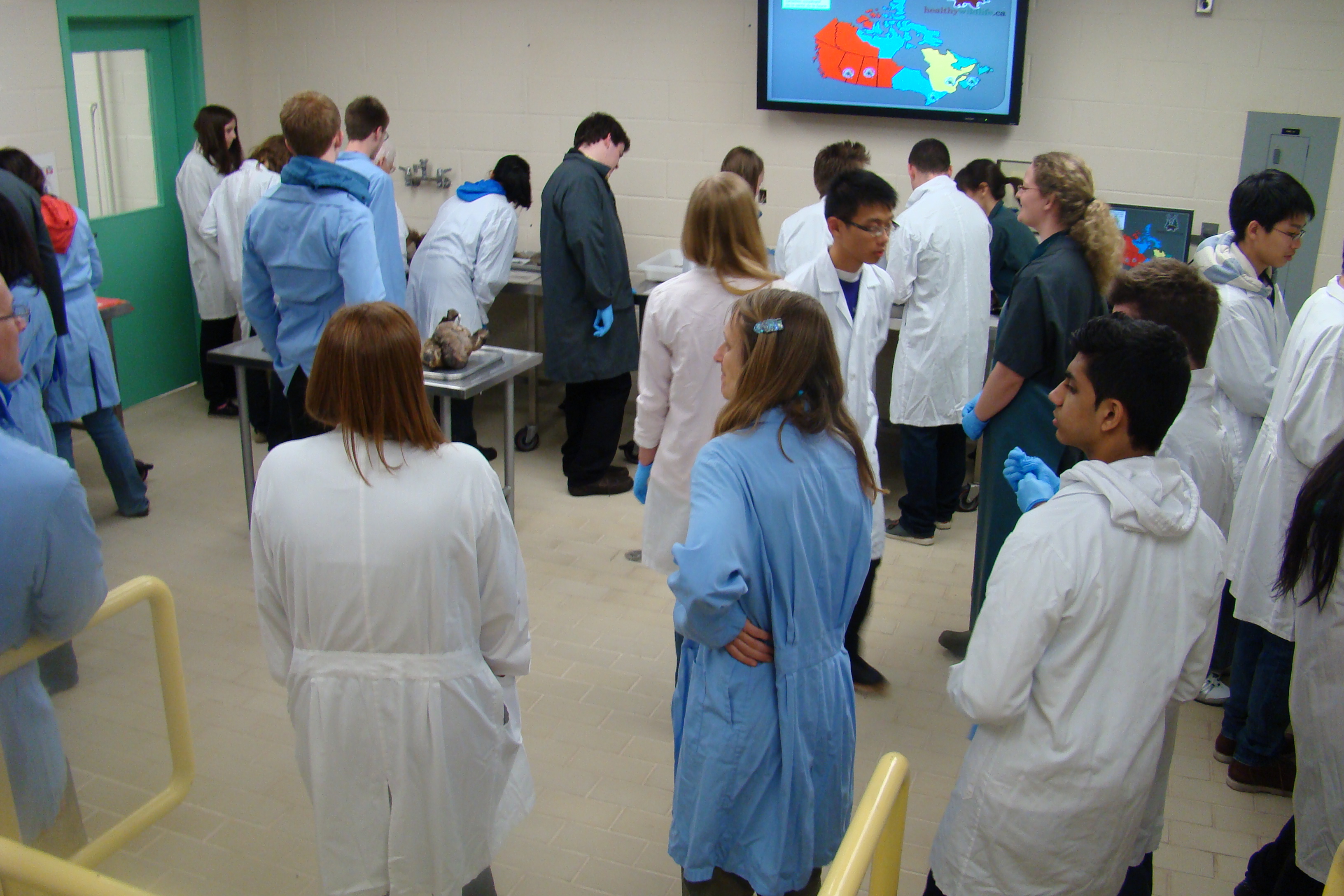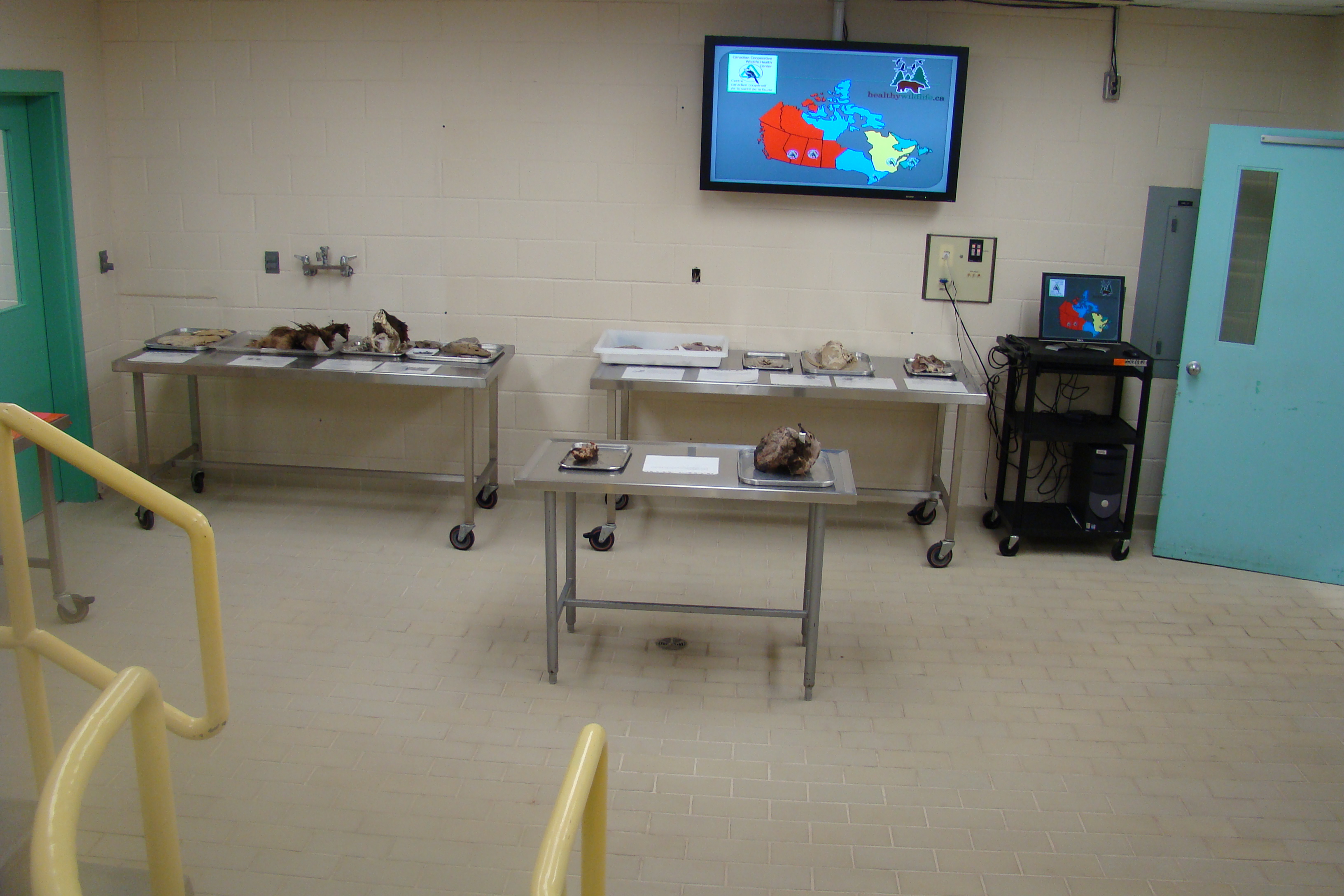 In May of 2012, hundreds of budding youth scientists in grades 7-12 that were finalists in their regional science fairs, descended upon the city of Charlottetown, Prince Edward Island to showcase their projects for high profile awards and scholarships. As part of the activities of the fair, CCWHC graduate student Heather Fenton and CCWHC associate pathologist Dr. Shannon Martinson held a workshop on career opportunities in pathology (the study of disease) and current research projects in the field within the Atlantic region. Students had a close up look at wonderfully interesting wildlife diseases and adaptations. Crowd favourites were the moose winter tick (Dermacentor albipictus) and the spiny esophagus of the endangered Leatherback sea turtle.