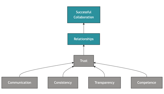 While I loved working in an Agile/Scrum environment in my previous role, not all aspects of this approach work well outside software development, so I didn’t bring the whole approach to my role in the CWHC. That said, my experience with Scrum taught me that the approach does a lot to build a collaborative environment, by enforcing some of the key components of trust: high degree of transparency, consistency, and communication (Scrum doesn’t ensure competency, considered a fourth component of trust). I really believe that great relationships are the key to any successful collaborative endeavour, and a great relationship requires trust: